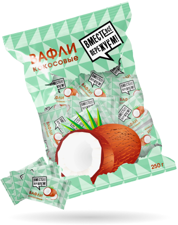 Почувствуйте тропический рай с каждым кусочком наших вафель с нежным кокосом. Экзотический вкус, который перенесет вас на солнечные пляжи..